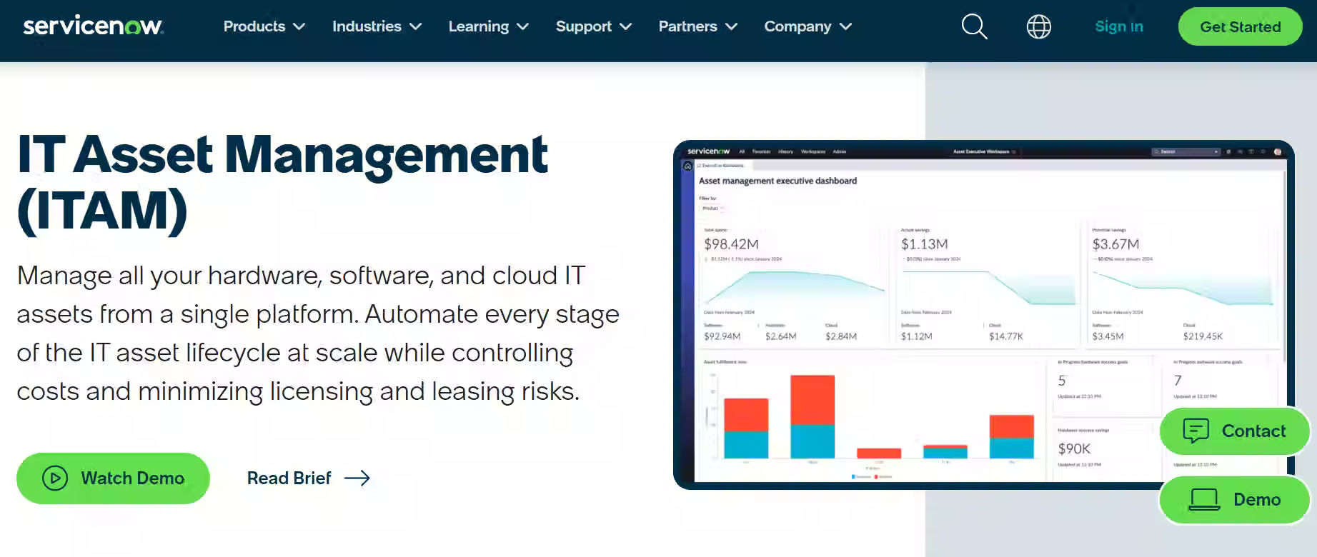 ServiceNow EAM / ITAM extends ServiceNow’s platform to manage both physical and IT assets. It connects service management, asset tracking, and workflows in one unified system.