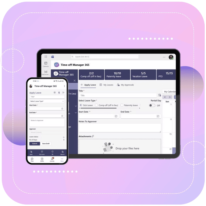 SharePoint Time off Manager 365 is a web-based tool that is integrated with Teams, Outlook, and SharePoint to manage leaves. It automates the approval processes, integrates the calendars, and provides real-time notifications. All leave information remains uniform throughout Microsoft 365.